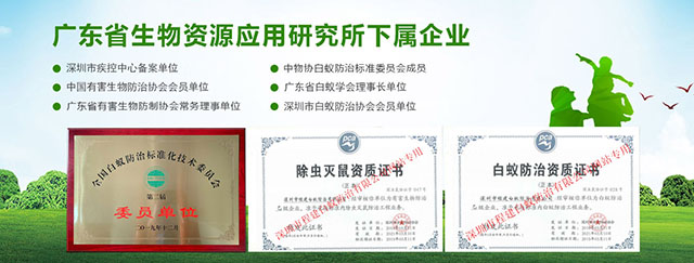 專注于徹底根治、防治結合,售后跟蹤服務,專業(yè)服務工程師有豐富實戰(zhàn)經(jīng)驗超過十年。持有專業(yè)資格證書認證:“有害生物防制服務機構服務能力證書B級”、“白蟻防治服務機構服務能力證書B級”所有員工持有“深圳市白蟻防治上崗證”和“深圳市除蟲滅鼠上崗證”,雙資格證上崗服務。榮獲過:“優(yōu)質(zhì)服務示范單位”、“白蟻防治服務信譽AAA級單位”、“深圳市白蟻防治先進單位”、“深圳市十大白蟻防治品牌”、“深圳市殺蟲公司”、“深圳市消殺公司”先進單位等榮譽。